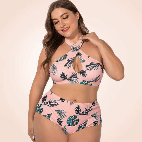 Zwei-Teiler Plus-Size Blumen Kreuz Bikini Strand Badebekleidung