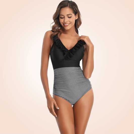 Retro Front Criss-Cross Rüscheneinteiler Badeanzug
