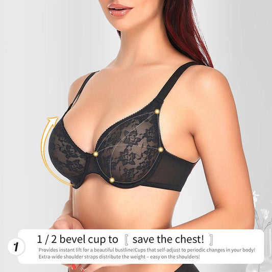 Push-Up Ultra dünner, unterfütterter schwarzer Netz-BH