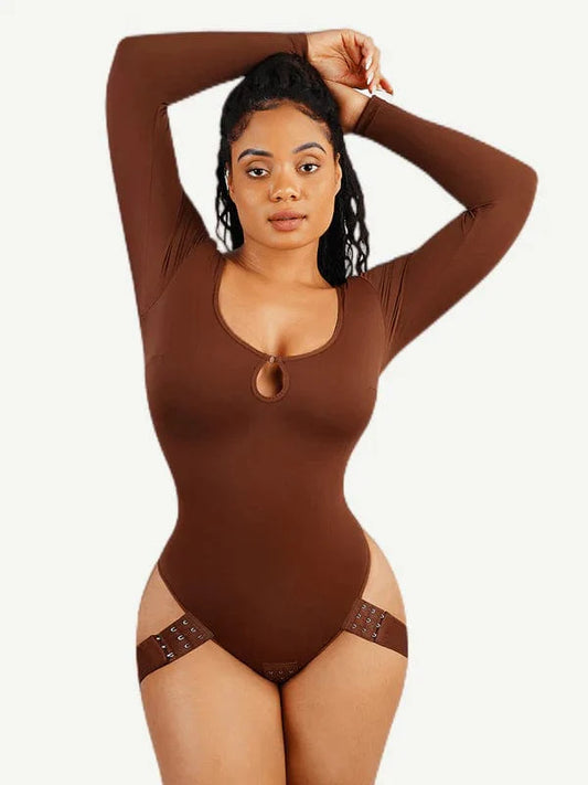 Langärmliger Shapewear-Body mit U-förmiger Büstenstütze