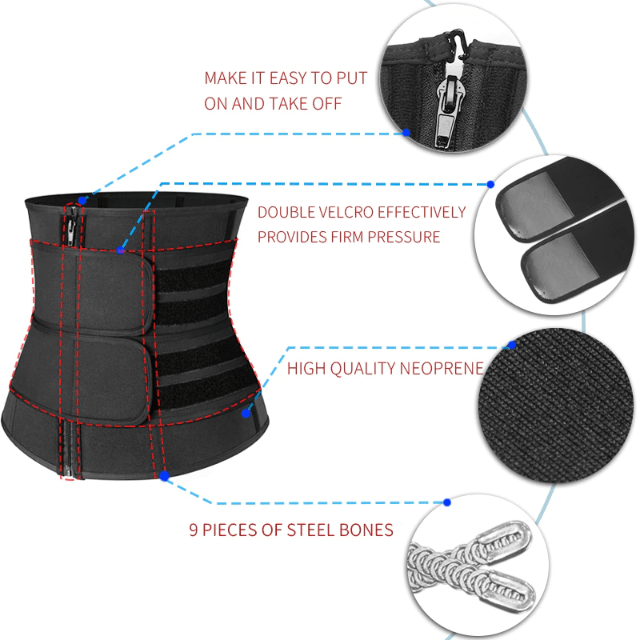 The waistband is adjustable with Velcro closures and a little hook fastener on the top. It is an ideal aid for an hourglass shape and excellent fit for short torso and normal torso body types. 2.1 mm single-layer neoprene fabric compression keeps you in place! Wear the waist trimmer belt while exercising and help burn more fat off your stomach area. This works by basically making you sweat as if you had a sauna around your belly.